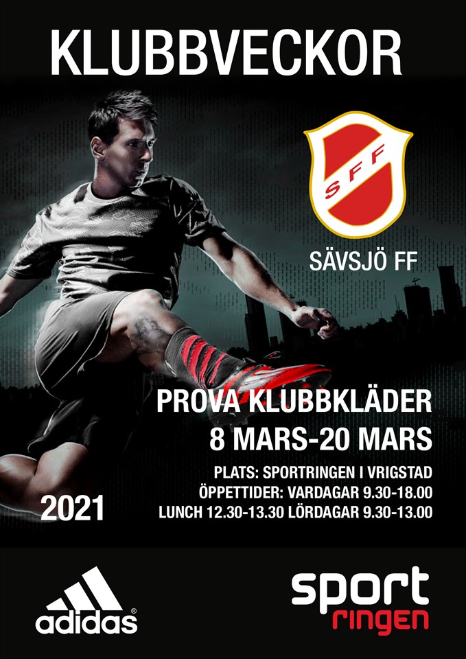 Nu är det dags att prova ut nya träningskläder. Dock ingen traditionell klubbkväll utan man får prova på plats på Sportringen. Kom ihåg att följa de rekommendationer och riktlinjer som finns! Sävsjö FF 6 mar 2021